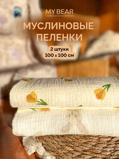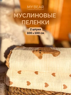Муслиновые пеленки для новорожденных 100х100 см 2 шт