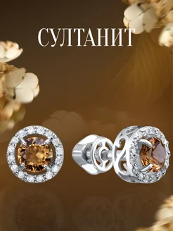 Серьги серебро с султанитом и фианитами