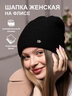 Шапка зимняя вязаная бини осень на флисе