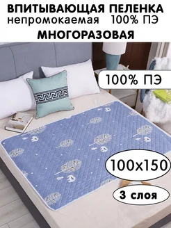 Пеленка непромокаемая многоразовая впитывающая 100х150 см