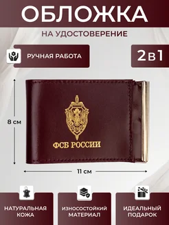 Обложка кожаная для удостоверения фсб с зажимом для денег