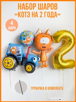 Воздушные шары Синий трактор и цифра 2 на 2 года