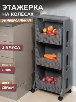 Этажерка на колесиках для кухни и ванной 3 Лофт