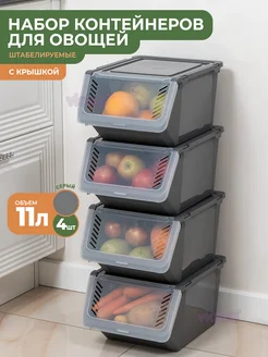 Ящик для хранения овощей пластиковый хозяйственный 16л, 4шт