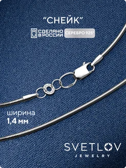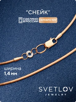 Цепочка на шею серебряная 925 пробы плетение Снейк 1,4 мм