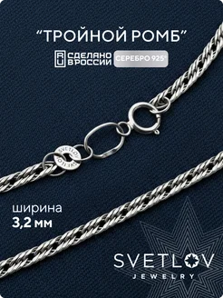 Цепочка на шею серебряная 925 пробы Тройной ромб 3,2 мм