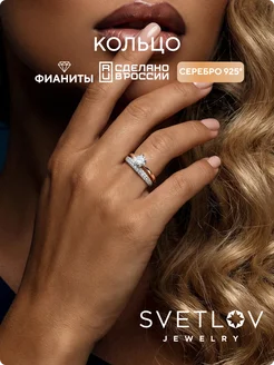 Серебряное кольцо 925 пробы с фианитами позолоченное двойное