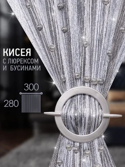 Нитяные шторы лапша кисея люрекс с бусинами 3анавески