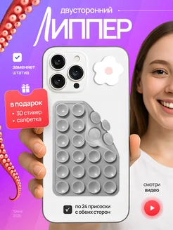 Держатель для телефона липпер присоска двусторонний серый