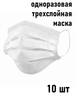 Маска одноразовая трёхслойная, 10 штук