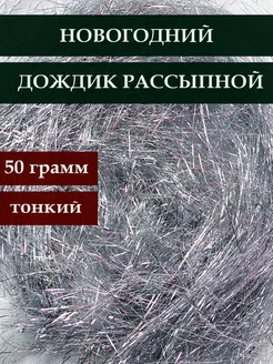 Дождик новогодний рассыпной тонкий серебряный на елку 50 гр