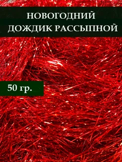 Дождик новогодний рассыпной тонкий красный на елку 50 гр