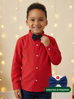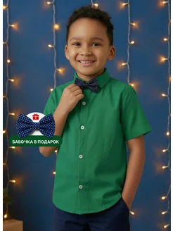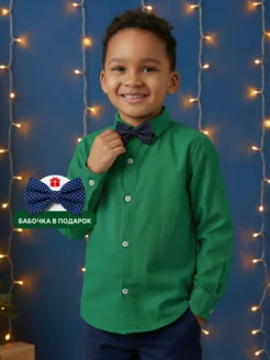 Рубашка зелёная с длинным рукавом новогодняя с бабочкой