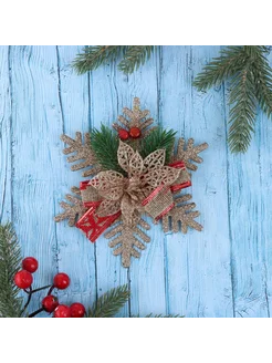 Елочная игрушка пуансеттия на снежинке