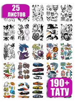 Переводные тату Машины Динозавры Череп 25 лист на 23 февраля