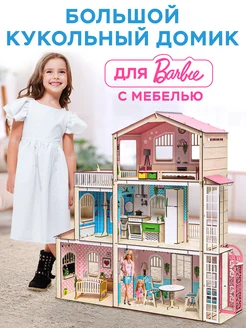 Большой кукольный домик для Barbie с мебелью и подсветкой
