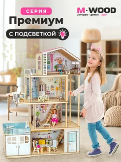 Большой кукольный домик с мебелью и подсветкой для Барби