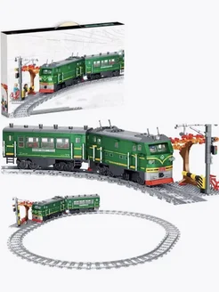 Конструктор Зеленый пассажирский поезд 801 деталь