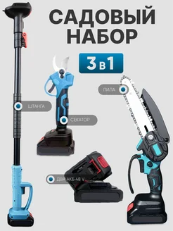 Садовый набор аккумуляторная пила секатор и высоторез 3в1