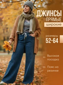 Джинсы широкие прямые на резинке большие размеры