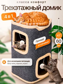 Домик для двух кошек с когтеточкой и лежанкой двухэтажный