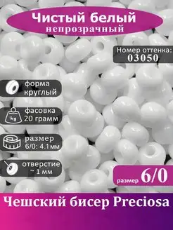 Бисер Чешский 03050 белый для бисероплетение 10 0 20 грамм