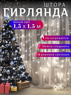 Гирлянда штора 1.5х1.5 занавес светодиодная на Новый год