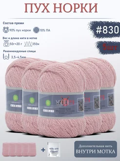 Пряжа для вязания пух норки синяя этикетка 5шт 830