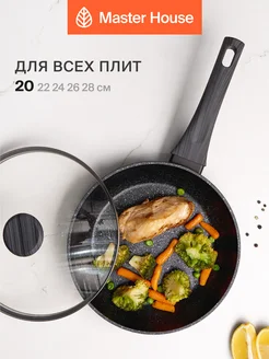 Сковорода с крышкой 20 см индукция антипригарная каменная