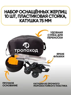 Жерлицы зимние 10 шт, катушка 75 мм (Оснащ)
