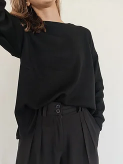 Лонгслив оверсайз y2k на флисе черный однотонный