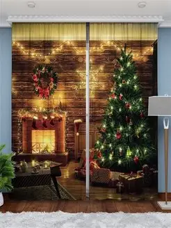 Фотошторы новогодние, шторы для гостиной в спальню 290х265