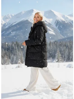 Пуховик зимний длинный с капюшоном куртка пальто
