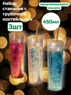 Стакан коктейльный новогодний с трубочкой 3шт