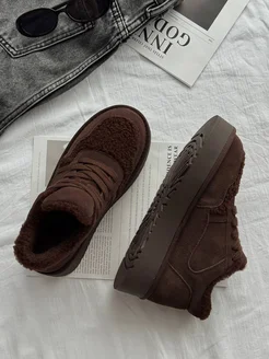 Угги зимние короткие на платформе с шнурками и мехом