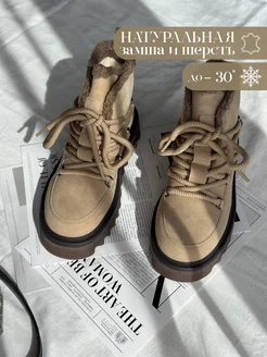 Угги зимние высокие натуральные с шнурками