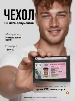 Чехол обложка для автодокументов СТС и прав натуральная кожа