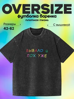 Футболка варенка oversize с вышивкой бывало и пох уже