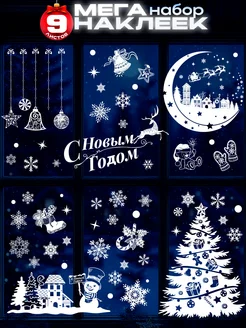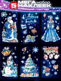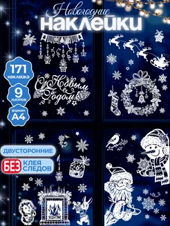 Новогодние наклейки на окна с блестками 2026 двусторонние