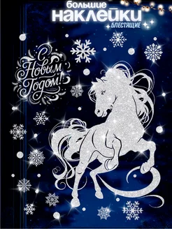 наклейка лошадь новогодняя двусторонняя 2026 с блестками