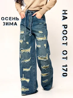 Джинсы широкие рваные багги трубы бойфренды большие размеры