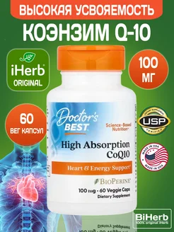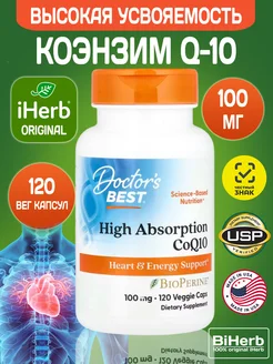 Коэнзим Q10 с высокой степенью усвоения с BioPerine, 100 мг