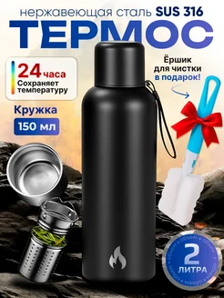 Термос 2 литра для чая металлический с кружкой и ситечком