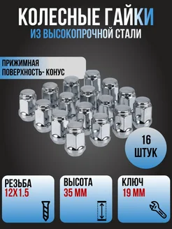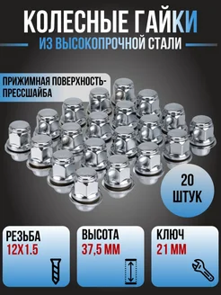 Гайки колесные м12х1,5 с прессшайбой - 24 шт