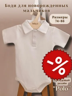 Боди поло для мальчика хлопковая, белая • 100% хлопок