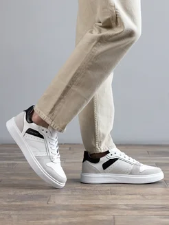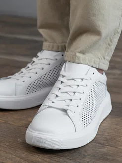 Кеды мужские белые кожаные летние Сквозная перфорация