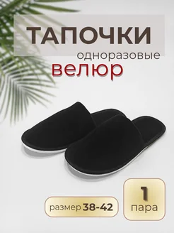 Тапочки одноразовые велюровые открытые с темной подошвой