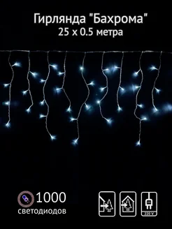 Гирлянда Бахрома уличная, 25 х 0.5м, 1000 LED, хол.белый
