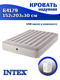 (64179) Кровать надувная 152х203х30 см с насосом USB