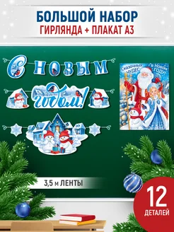 гирлянда новогодняя снегири и снеговики, двусторонняя
